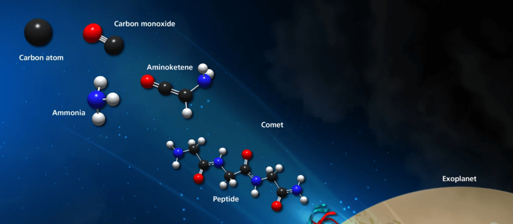 The team has discovered a new pathway to the formation of peptides. And it requires less energy than other pathways, meaning it could happen naturally in the cold of outer space. Also, it requires C atoms, carbon monoxide, and ammonia, which are the most abundant molecule species in the ISM.