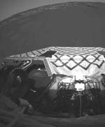 Meanwhile, halfway around Mars, Opportunity's twin, Spirit, continues on the mend from a computer memory problem that struck it a week ago. "Right now we're working to get complete control of the vehicle, and we're still not quite there," said JPL's Jennifer Trosper, mission manager. "If we're on the right track, we hope to be back doing some science by early next week. If we're not on the right track, it could take longer than that."