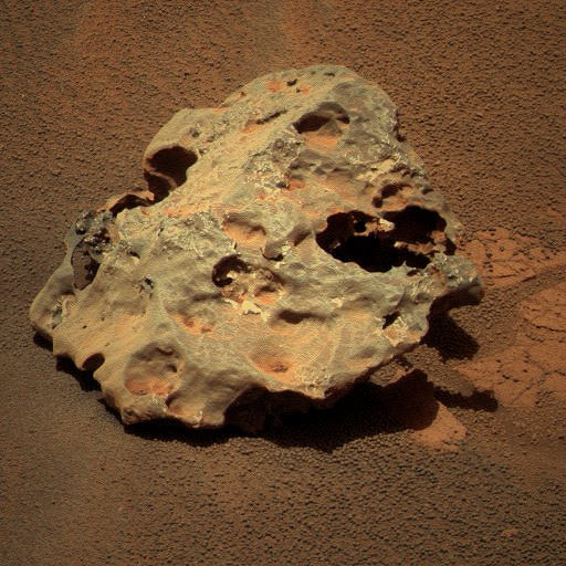 the end of September (around sol 2020 for the rover). Mackinac was found on sol 2034 (Oct 13), and it looks very similar in composition to the two earlier meteorites. Opportunity analyzed the Block Island and found it was made of iron and nickel.