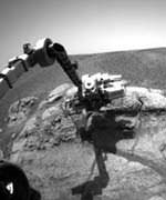 Image credit: NASA/JPL On sol 31, which ended at 3:36 a.m. Wednesday, February 25, Opportunity awoke to "Rock Around the Clock" by Bill Haley and his Comets. At 1:00 a.m. Local Solar Time, Opportunity sent data to Earth via the Mars Global Surveyor orbiter and then sent another whopping 145.6 megabits of data at 3:30 a.m. Local Solar Time via the Mars Odyssey orbiter.