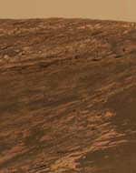 A close-up look at the Endurance Crater rocks could help with interpreting the other exposures seen from orbit. "It's possible that the whole stack was deposited in water -- some particles washed in by flowing water and others chemically precipitated out of the water," said Dr. Phil Christensen of Arizona State University, Tempe, lead scientist for the rover's spectrometer. "An alternative is that wind blew sand in."