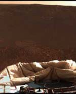 "We're looking out across a pretty spectacular landscape," said Dr. Jim Bell of Cornell University, Ithaca, N.Y., lead scientist for the panoramic cameras on Spirit and Opportunity. "It's going to be a wonderful area for geologists to explore with the rover."