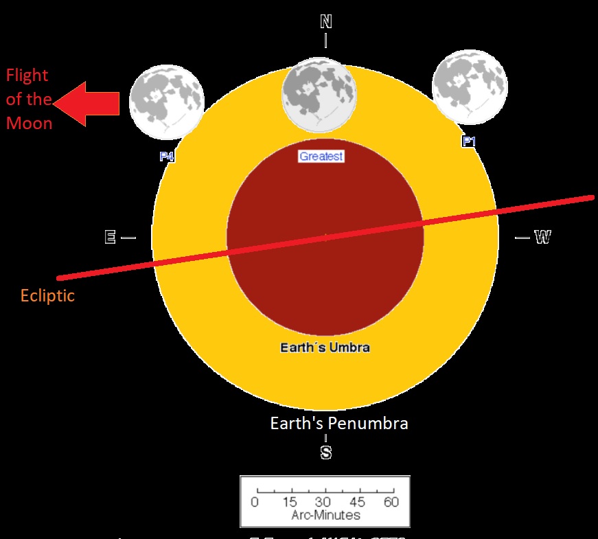 Would you notice Friday's penumbral lunar eclipse at all at a casual glance? Well, the Moon juuuust misses the edge of the inner umbra by 3'… perhaps, you might see a ragged bit of shading on the Moon's southern limb at maximum eclipse, due to atmospheric scattering. The Moon is 90% immersed in the penumbra at maximum. Look for a bit of tea-colored shading on the Moon around mid-eclipse.