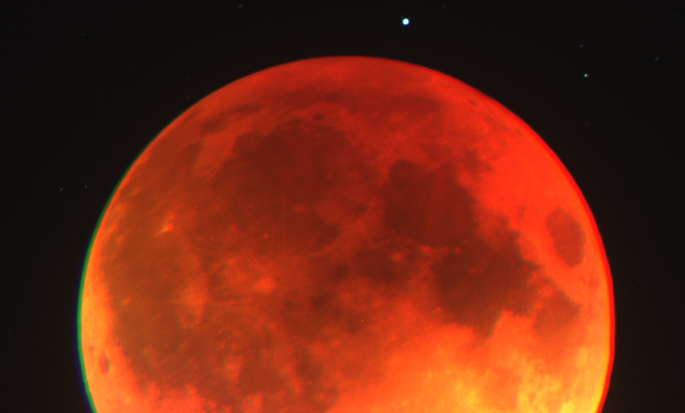 This crimson glow is evident on the face of the Moon during totality: longer red wavelengths of light get filtered into the cone of the Earth's shadow, giving the Moon a ruddy cast. This is the 'Blood Moon' of modern internet meme fame. This can vary from one total lunar eclipse to another, from a bright saffron yellow to a brick brown tint. This is partly due to how central the Moon passes through the core of the Earth's dark inner umbra, but mainly due to how much dust and aerosols are suspended in the Earth's atmosphere at the time. For example: the shallow April 4, 2015 eclipse was extremely bright, prompting a lively discussion of the theoretical versus observed diameter of the Earth's shadow at the Moon's distance, and if the eclipse was actually total at all. Fast-forward to May 16, 2022 and a total lunar eclipse that was extremely dark, one of the most darkest in recent memory. This was mainly due to the recent Tonga eruption, which occurred just a few months prior on January 15th, 2022.