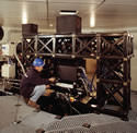 The first crates of the 60+ cubic-meter shipment with MACAO components arrived at the Paranal Observatory on March 12, 2003. Shortly thereafter, ESO engineers and technicians began the painstaking assembly of this complex instrument, below the VLT 8.2-m KUEYEN telescope (formerly UT2).