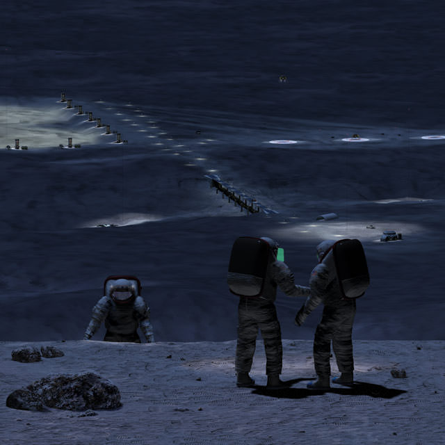 In a series of 17 incremental missions, a human base would be built, made operational and occupied. It starts with setting up communication and navigation satellites around the Moon to enable precision operation for the robotic systems.