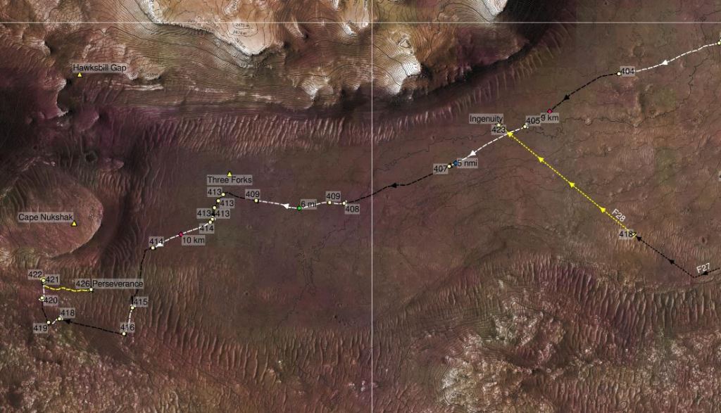 "With the Three Forks depot in our rearview mirror, Perseverance is now headed up the delta," said Rick Welch, Perseverance's deputy project manager at JPL. "We'll make our ascent via the 'Hawksbill Gap' route we previously explored. Once we pass the geologic unit the science team calls 'Rocky Top,' we will be in new territory and begin exploring the Delta Top."