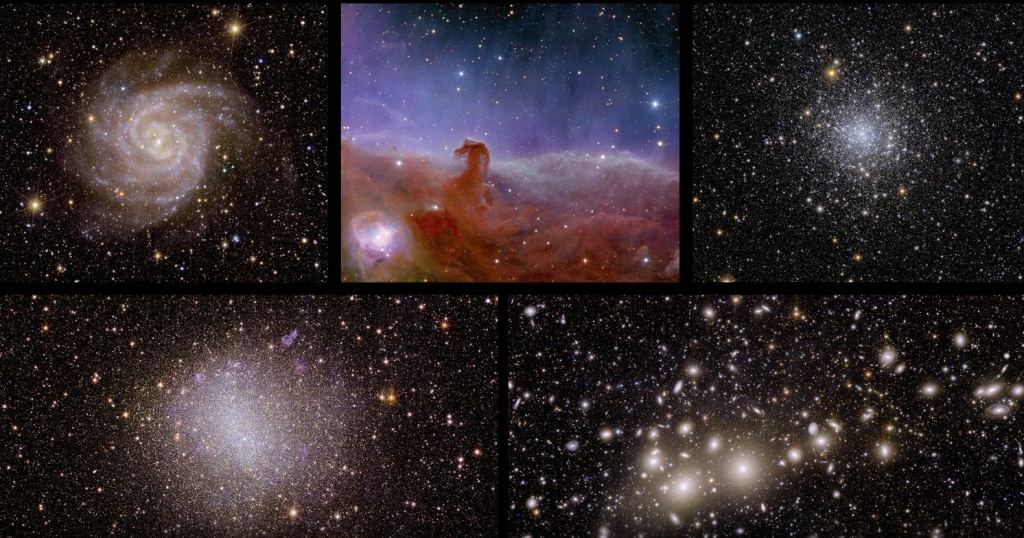 Euclid launched on July 1st, 2023 and made its way to the Sun-Earth Lagrange 2 point, the same spot where the JWST resides. Euclid is basically a wide-angle telescope with a 600 MB camera. Using its suite of scientific instruments, it measures the redshift of galaxies in an effort to understand the accelerating expansion of the Universe. Its measurements support the mission's main science goals: to understand dark matter and dark energy.