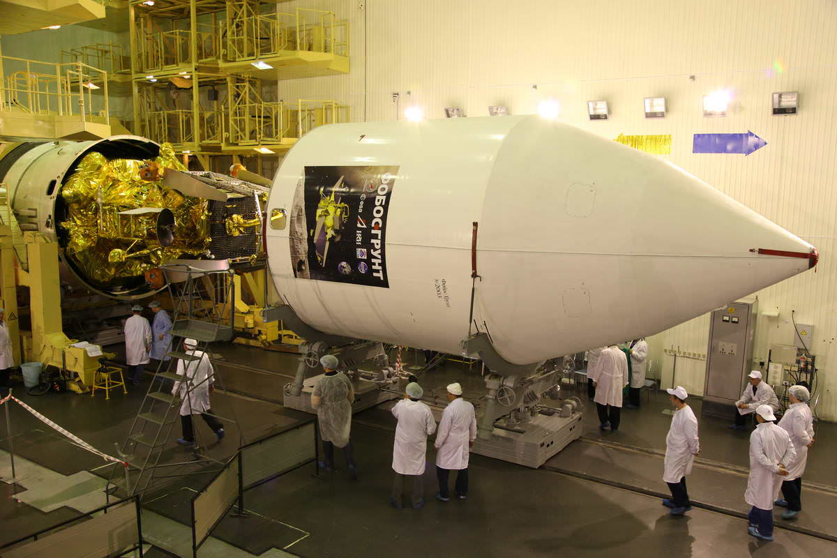 , Russia's first interplanetary mission in nearly two decades, has now been encapsulated inside the payload fairing and sealed to the payload adapter for mating to the upper stage of the Zenit booster rocket that will propel the probe to