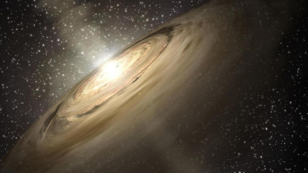 (A note on terminology: a protosolar disk is the disk of gas and dust that exists while the star at the center is forming. A protoplanetary disk is the same disk after the star has formed but while planets are still forming.)