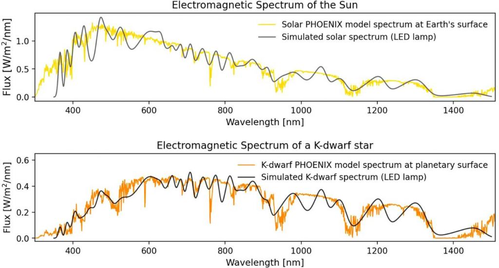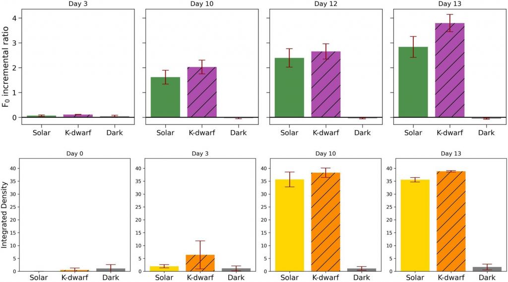 The researchers also tested the photosynthetic efficiency and found no significant difference between the solar and K-dwarf samples.