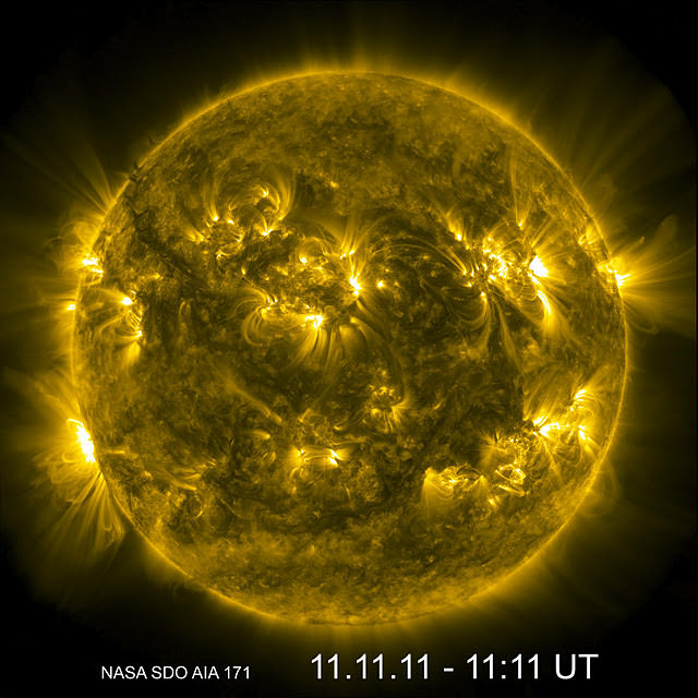 [caption id="attachment_90895" align="aligncenter" width="576" caption="The Sun at 11:11 UTC on 11/11/11 in a different wavelength. Credit: NASA"]