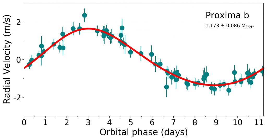 Reference: Anglada-Escudé, Guillem, et al. " A terrestrial planet candidate in a temperate orbit around Proxima Centauri." Nature 536.7617 (2016): 437-440.