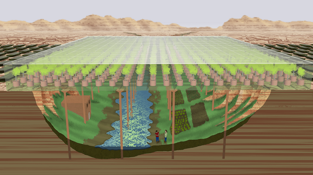 The pair detailed this concept further in a peer-reviewed study that addressed how these same biological and agricultural methods could be used to create vast greenhouses on Mars (aka. GrowMars). In this process, algae is grown in greenhouses that use locally-harvested water, atmospheric CO2(on Mars), waste CO2from human respiration and waste, or CO2and carbon monoxide (CO) from lunar cold traps, and sunlight.