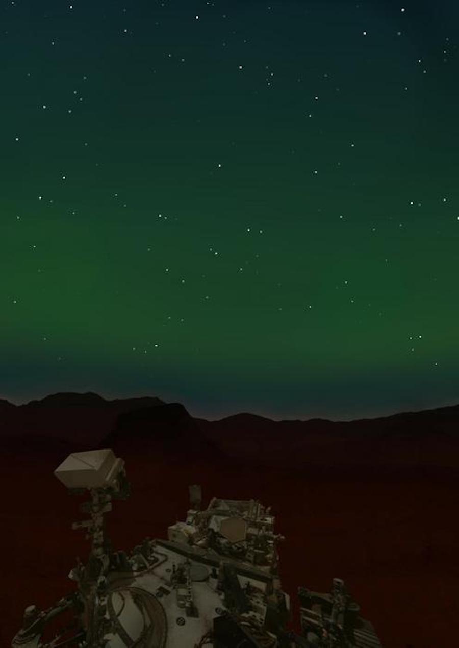 This is somewhat unlike the auroral displays many of us have enjoyed on Earth, which are typically confined to the polar regions thanks to our planet's magnetic field. Mars lacks this protective magnetic shield so the Martian displays can appear anywhere across the planet's night side as a diffuse glow spreading across the entire sky.