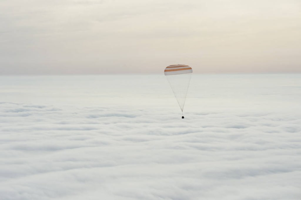 The Soyuz TMA-18M spacecraft is seen as it lands with Expedition 46 Commander Scott Kelly of NASA and Russian cosmonauts Mikhail Kornienko and Sergey Volkov in Kazakhstan on Wednesday, March 2, 2016. Photo Credit: (NASA/Bill Ingalls)[/caption]
