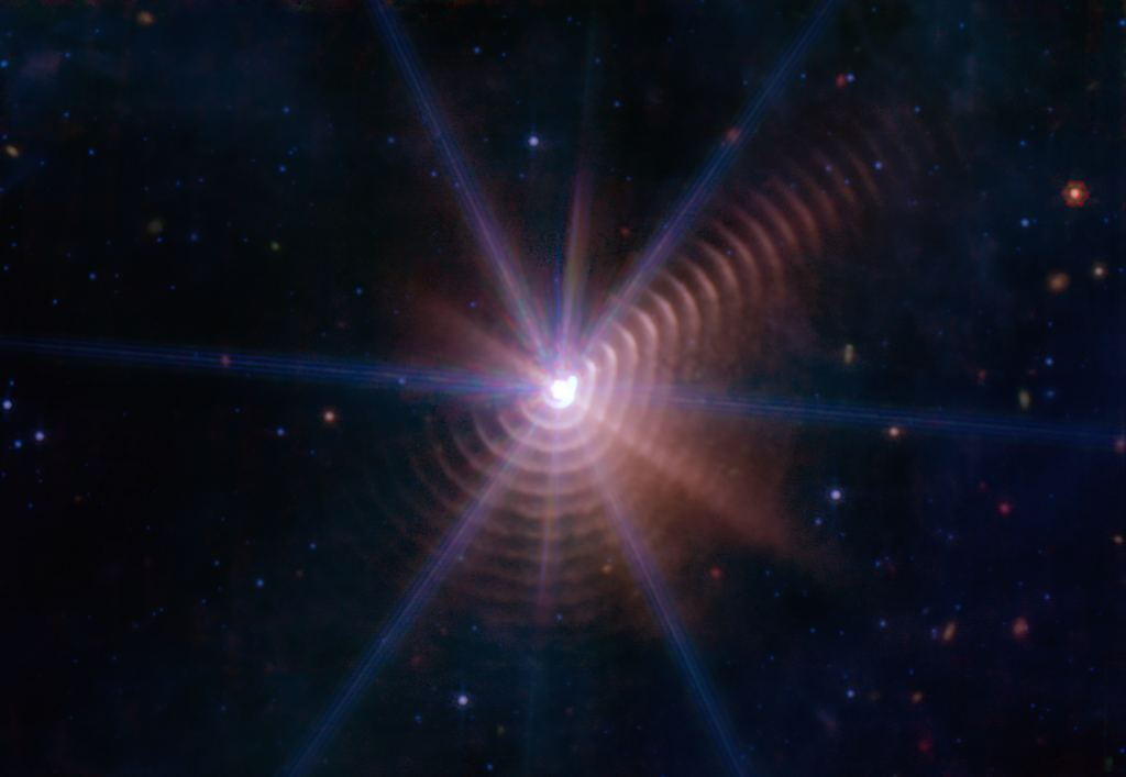 The James Webb Space Telescope imaged WR 124 as one of its first images in 2022. The JWST's infrared observing capability revealed more detail in the nebular halo of gas and dust that surrounds the doomed star than other telescopes have. The star's extreme stellar winds are at work blasting material away into space, creating the short-lived nebula. The beautiful nebula is a warning sign, heralding WR 124's explosion as a supernova in a few hundred thousand years.