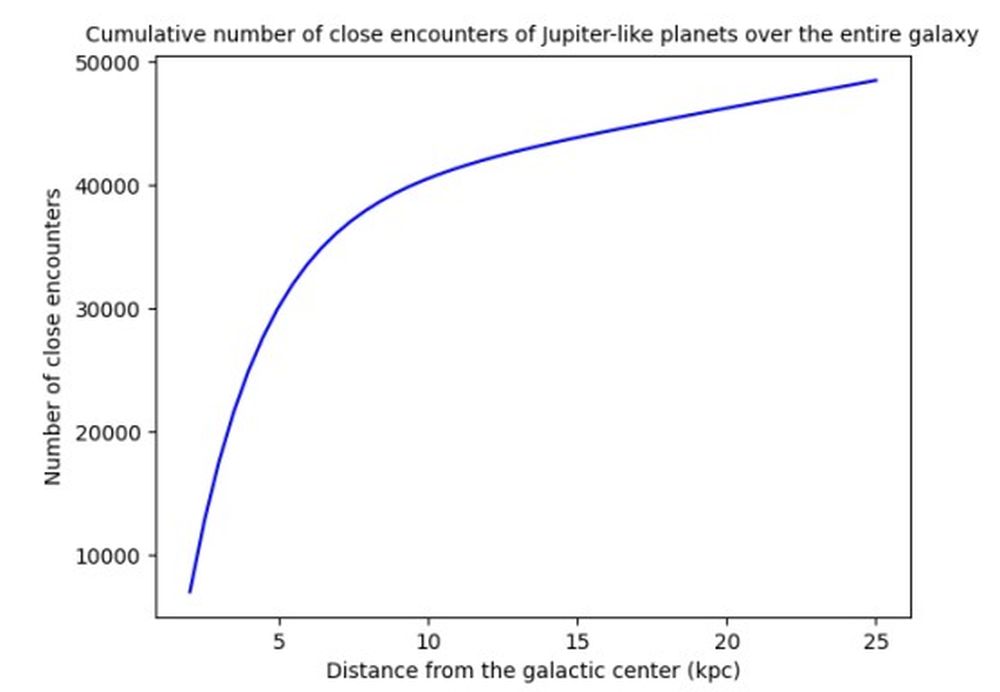 To test how plausible the idea of PBH flybys are, the researchers estimated the number of flybys in the galaxy and their typical velocities. To do that, they based their work on a solar system with one solar-mass star and a planet with a Jupiter-like orbit in terms of its eccentricity and semi-major axis. "We focus on the case that the intruding PBH passes through the system without being captured, i.e. a one time ‘flyby’," the researchers explain.