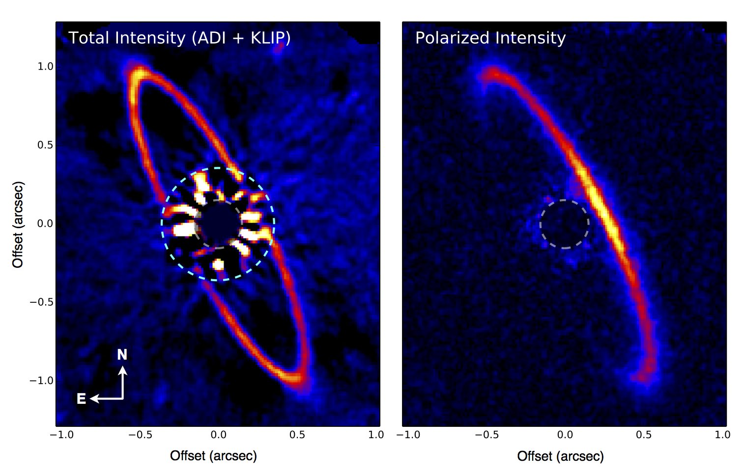 Perrin's presentation also introduced never-seen details in the dusty ring around the young star HR 4796A. GPI also has the unique ability of detecting only polarized light, which sheds light on different physical properties.