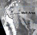 An international research team using data from NASA's SeaWinds instrument aboard the Quick Scatterometer spacecraft has detected the earliest yet recorded pre-summer melting event in a section of Antarctica's Larsen Ice Shelf. This huge, nearly 200 meter (656 foot) thick plate of glacier-fed floating ice, which in the late 1980s was about as large as Indiana, experienced dramatic disintegration events beginning in 1995 that have reduced its area by nearly 10 percent, or more than two trillion tons of ice.