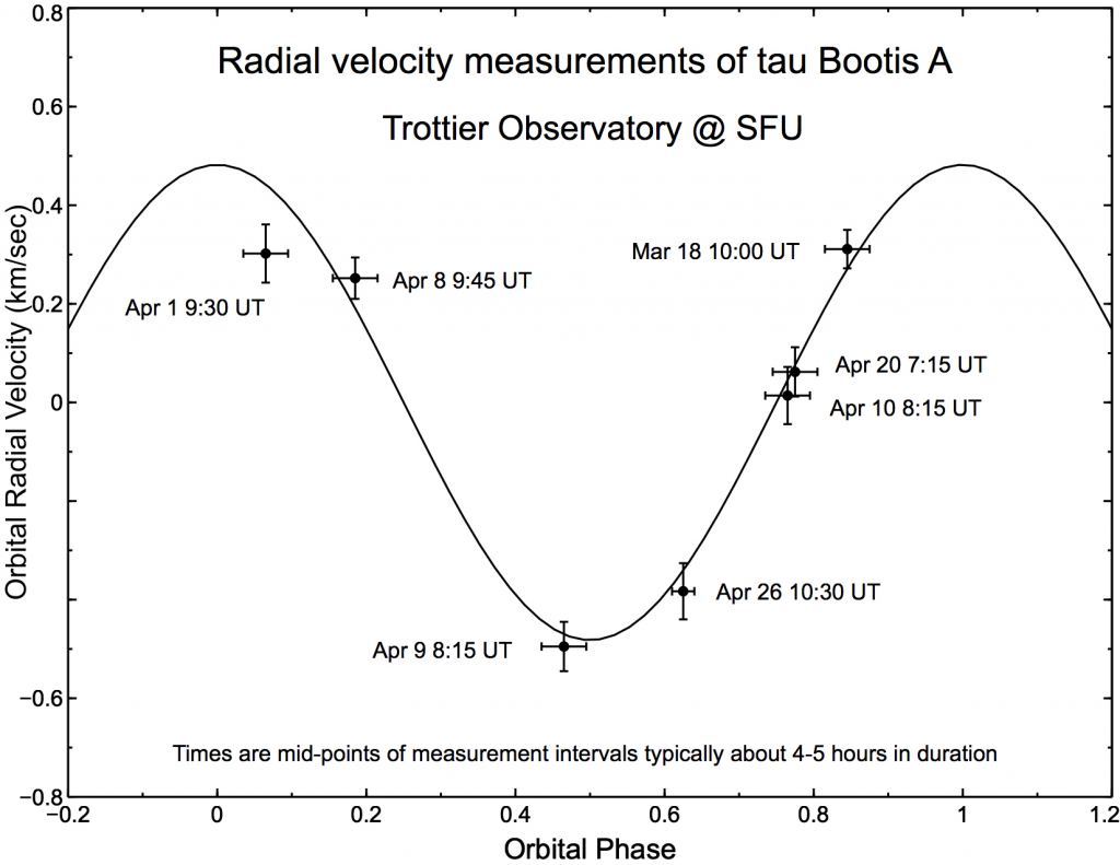 Author's Edit: Clarified above that measurements of Tau Boötis A from the SFU Trottier observatory were conducted by Dr. Howard Trottier.