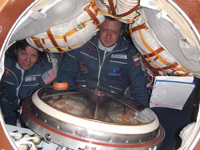 [caption id="attachment_82070" align="aligncenter" width="580" caption="Kondratyev and Coleman inside the Soyuz living area. Credit: Roscosmos"]