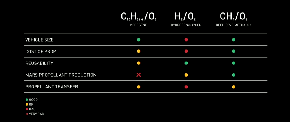 This slide from Musk's presentation shows the availability/desirability of the three types of fuel that could be derived from Mars. Image: SpaceX[/caption]