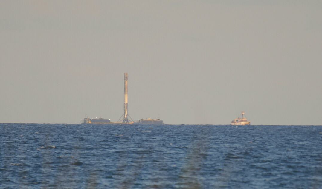 Barely nine minutes after liftoff the Falcon 9 first stage carried out a propulsive soft landing on an ocean going platform located some 400 miles off the east coast of Florida.