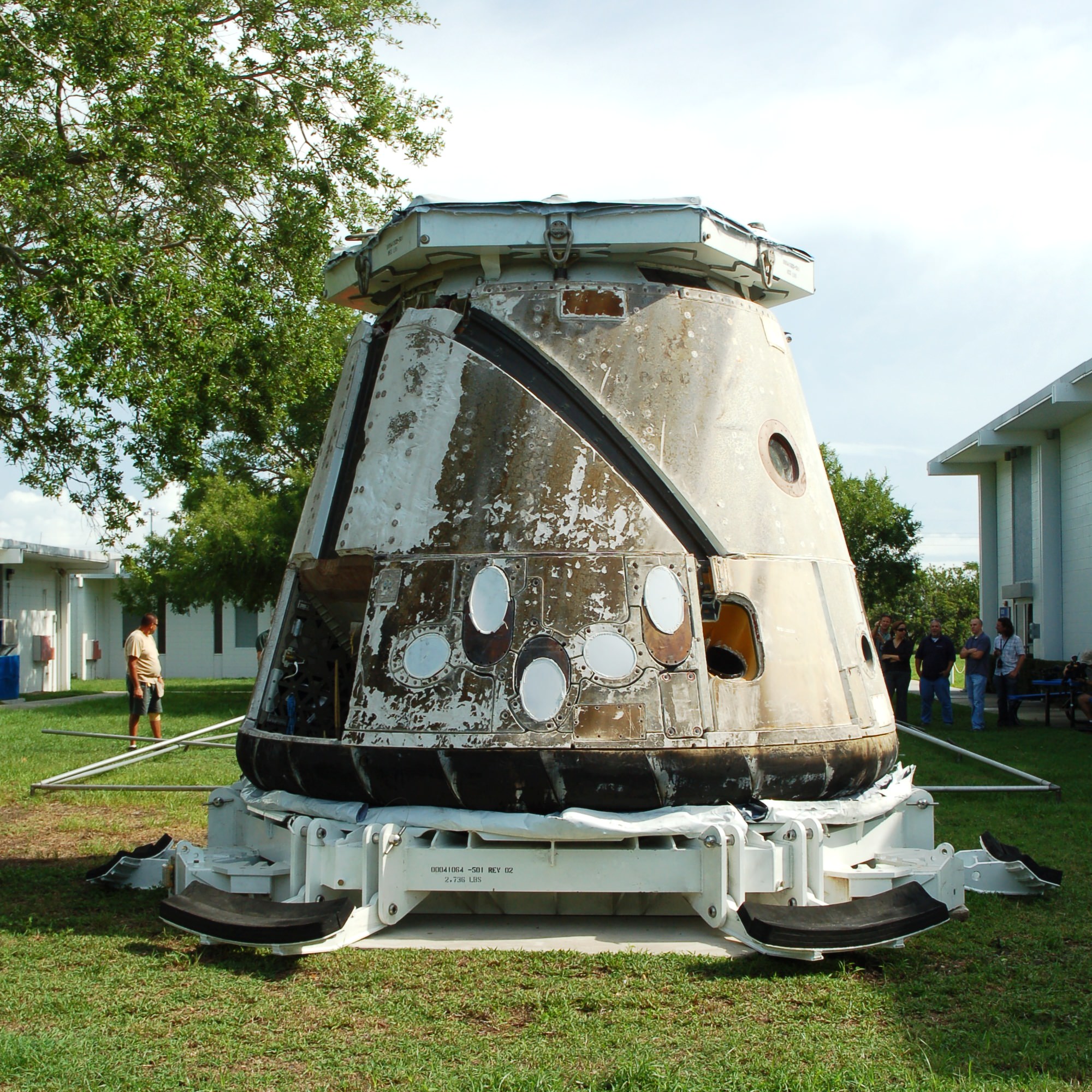 The Dragon Spacecraft was on display outside of Cape Canaveral Air Force Station. Placed between SpaceX's Launch Control Center (LCC) and the U.S. Air Force Space and Missile History Center, the Dragon's scorched hull was displayed to remind Space Coast residents that the space program was not retiring along with the shuttles.