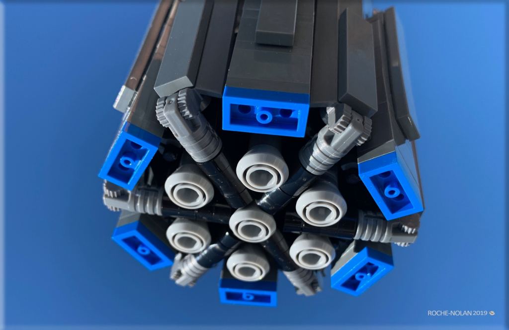The kit is based around the Blue Origin effort to get to the Moon. It features their New Glenn reusable rocket, the launch tower, and the Blue Moon lunar lander. The kit also includes a large rover, four mini-rovers, and a satellite to deploy on the way.
