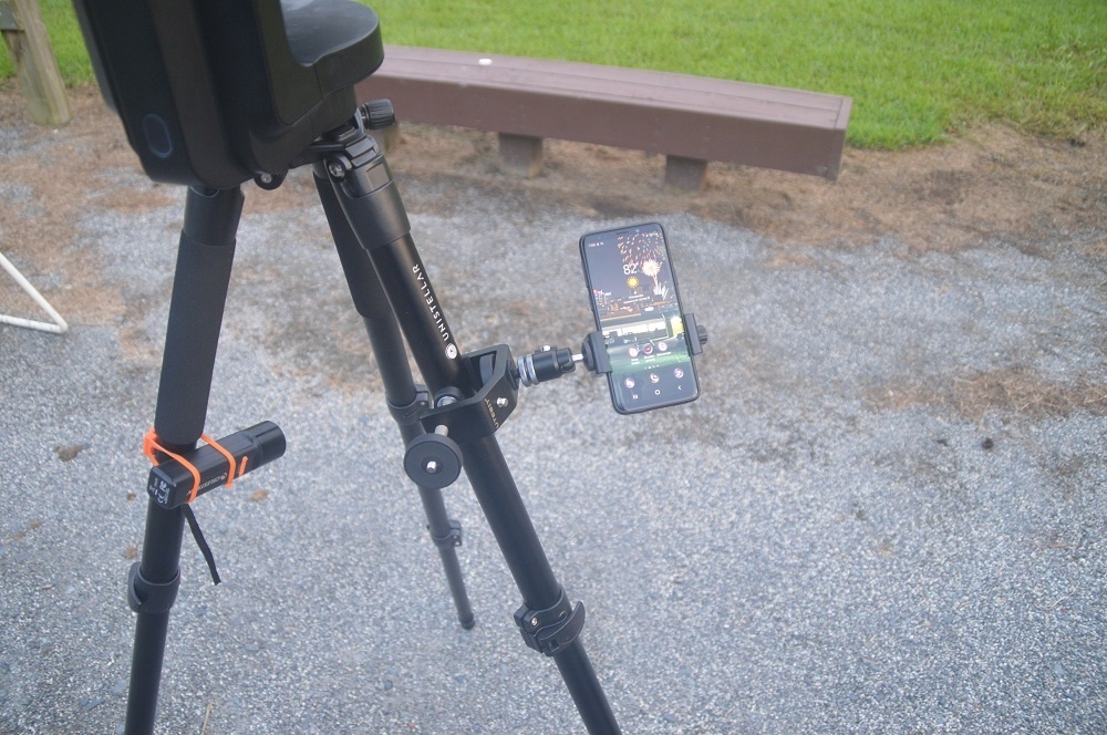 Our recent star party experience with the telescope also revealed another place the eQuinox really shines: public outreach. Instead of dividing my time between finding the target, operating the telescope, and explaining it to the audience, I could just 'talk space,' while the telescope was acquiring the target. Plus, clamping the phone to the tripod leg allowed us to simply hold court around the screen, rather than having everyone queue up one-at-a-time to the eyepiece. We even showed off elusive, fainter targets such as the Blue Snowball planetary nebula and the Eastern Veil Nebula in Cygnus, not your usual star party faves...