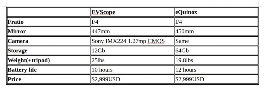 Here's what's new on the eQuinox telescope, versus The eVScope: