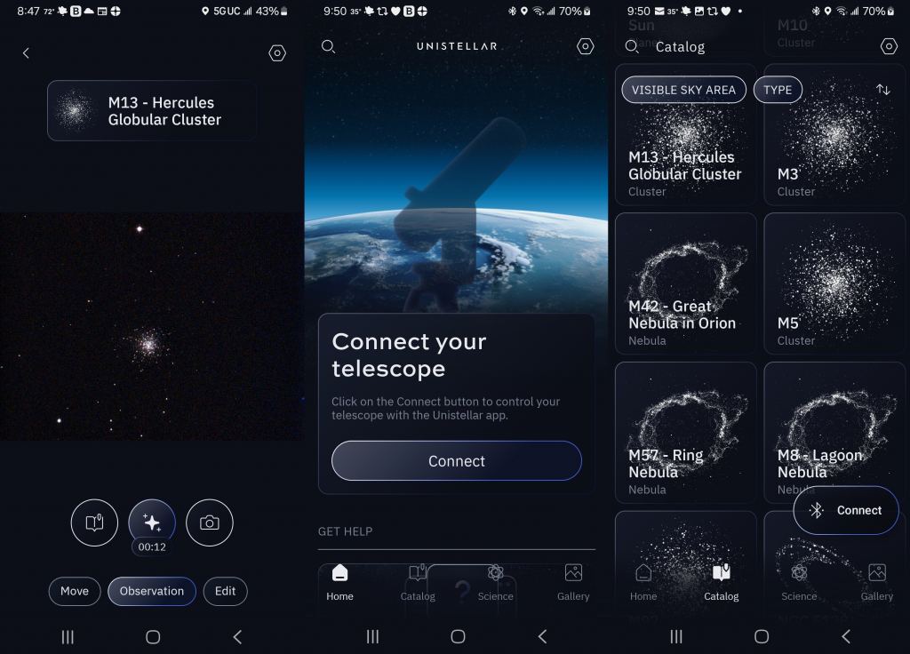 Smartscopes find and aim at targets using a method known as 'plate-solving' in tandem with satellite GPS. This involves looking at segments of the sky, and comparing the star pattern with a known database. You can see this in action as the scope slews from one part of the sky to the next on startup. Unlike, Vaonis's Stellina, Unistellar's telescopes give you a live view during the slewing process, and allow users to manually slew around the sky in a virtual joy stick mode, a nice, hands-on touch.