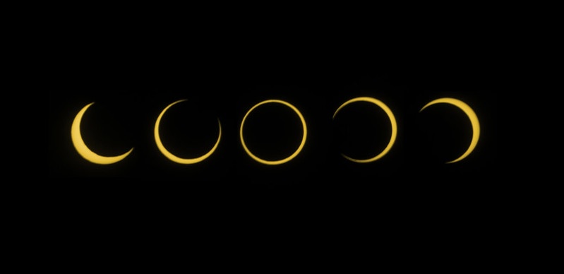 Annular solar eclipses occur when the Moon is in the farthest span of its elliptical orbit when it passes in front of the Sun, and fails to cover the solar disk completely. This weekend is a case in point, as the Moon reaches apogee just four days prior to New phase and eclipse. The bright annulus seen around the Sun during an annular eclipse has, in recent years, gained popularity as a 'ring of fire' solar eclipse.
