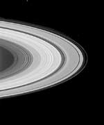 Image credit: NASA/JPL/Space Science Institute The multitude of grooves for which Saturn's rings are famed, clumps in the F ring, and several Saturnian moons are visible in this image. Moons visible in the image are: Mimas (398 kilometers, 247 miles across) above the rings at left; Epimetheus (116 kilometers, 72 miles across) just above the A ring ansa; Enceladus (499 kilometers, 310 miles across) near upper right. The image was taken with the narrow angle camera on May 10, 2004 at a distance of 27.1million kilometers (16.8 million miles) from Saturn. Image scale is 162 kilometers (101 miles) per pixel. Contrast in the image was enhanced to aid visibility.