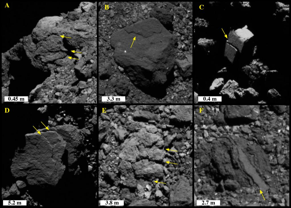 "This is the first time evidence for this process, called thermal fracturing, has been definitively observed on an object without an atmosphere," said Jamie Molaro of the Planetary Science Institute in Tucson, Arizona. Molaro is the lead author of a paper published today in Nature Communications. "It is one piece of a puzzle that tells us what the surface used to be like, and what it will be like millions of years from now."