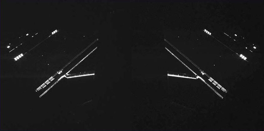 Philae is awake... and taking pictures! This image, acquired last night with the lander's CIVA (Comet nucleus Infrared and Visible Analyzer) instrument, shows the left and right solar panels of ESA's well-traveled