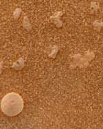 The shapes by themselves don't reveal the particles' origin with certainty. "A number of straightforward geological processes can yield round shapes," said Dr. Hap McSween, a rover science team member from the University of Tennessee, Knoxville. They include accretion under water, but apparent pores in the particles make alternative possibilities of meteor impacts or volcanic eruptions more likely origins, he said.