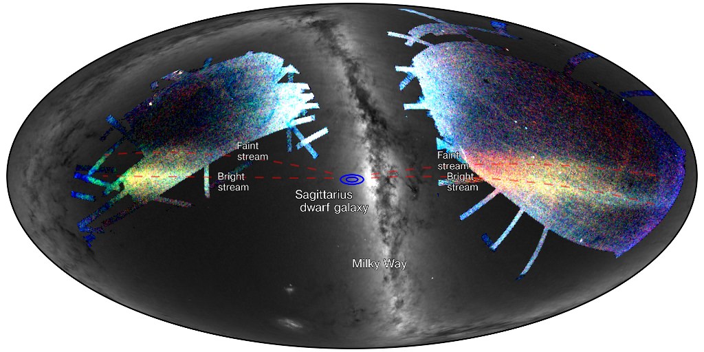 Analyzing data from the latest Sloan Digital Sky Survey (SDSS-III), the team found two streams of stars in the Southern Galactic hemisphere that were torn off Sagittarius dwarf galaxy. This new discovery also connects newly found streams with two previously discovered streams in the Northern Galactic hemisphere.