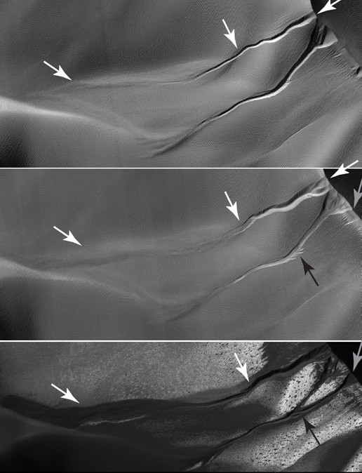 This isn't the first time the gullies have been observed: "For over two decades, planetary scientists have had many ideas about how and when very long, narrow gullies formed on frost-affected sand dunes on Mars" Dr. Dinwiddie says. Explanations for those gullies mostly involve some sort of CO2 ice or water ice.