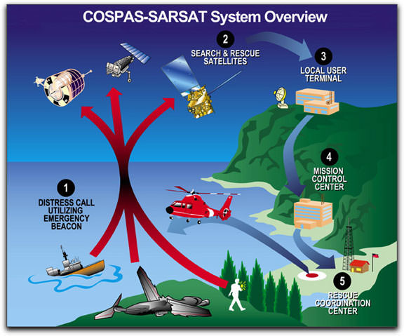 [/caption] We all know how satellites make our lives better and easier (television, communications, GPS, weather forecasting, etc) but satellites also directly save people's lives. In 2009 alone, satellites helped with the rescue of 195 people during life-threatening situations throughout the United States and its surrounding waters. In each incident, a NOAA satellites pinpointed downed pilots, shipwrecked mariners, or stranded hikers by detecting a distress signal from an emergency beacon and relaying the information to first responders on the ground.