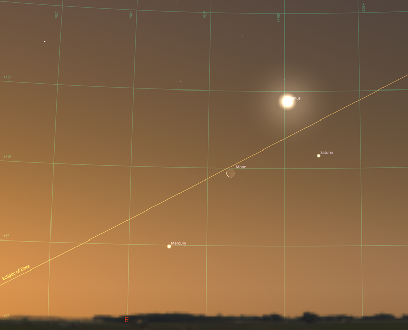 Looking eastward on the morning of April 25th. Credit: Stellarium.