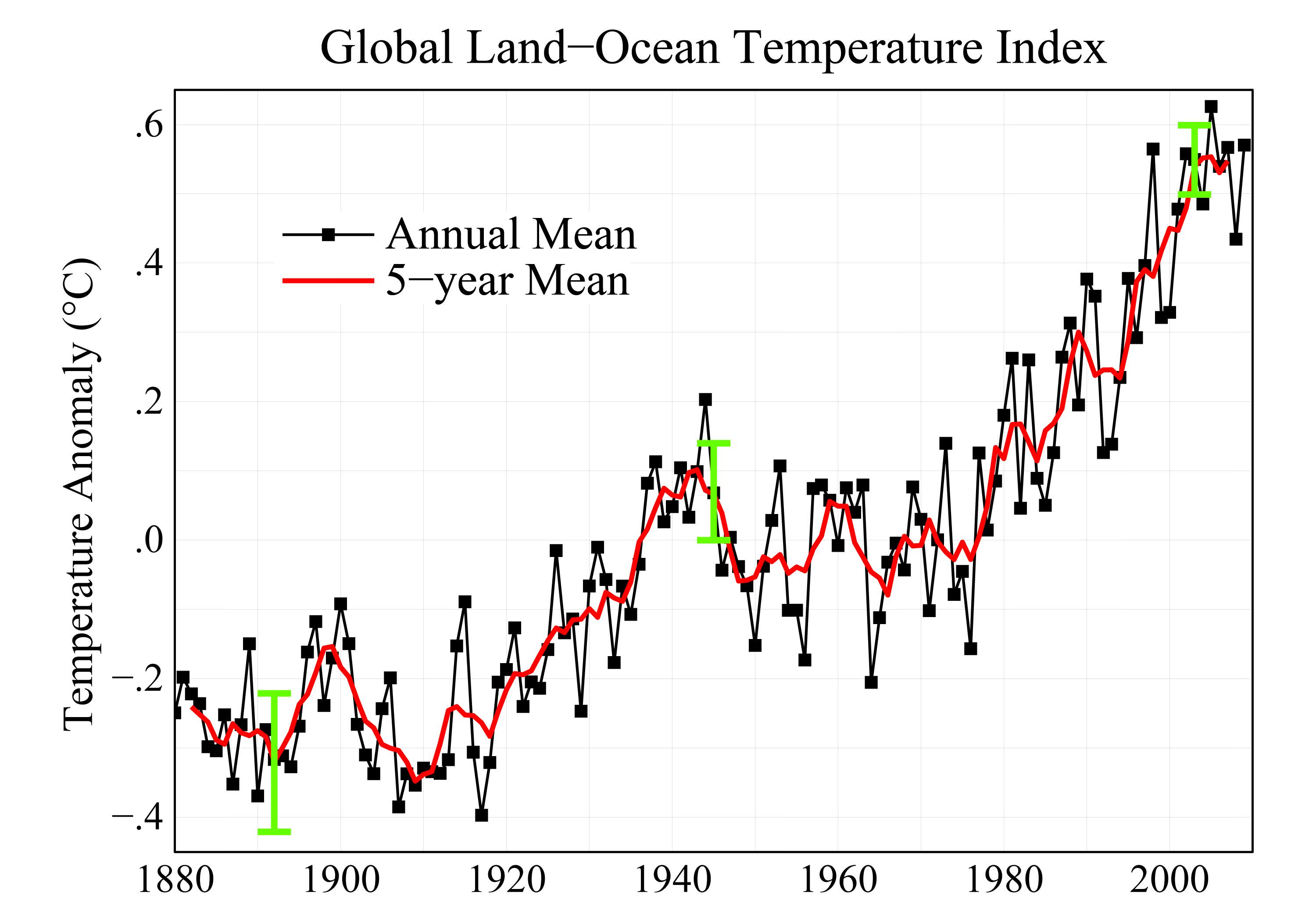[/caption] Gavin Schmidt: In fact, for any individual year, the ranking isn't particularly meaningful. The difference between the second warmest and sixth warmest years, for example, is trivial. The media is always interested in the annual rankings, but whether it's 2003, 2007, or 2009 that's second warmest doesn't really mean much because the difference between the years is so small. The rankings are more meaningful as you look at longer averages and decade-long trends.