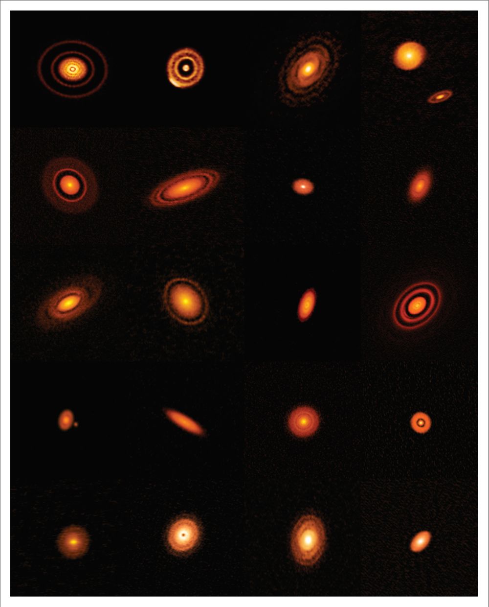 *These are 20 of the protoplanetary disks imaged by ALMA. Astronomers think each gap is where a planet is forming. Image Credit: ALMA (ESO/NAOJ/NRAO), S. Andrews et al.; NRAO/AUI/NSF, S. Dagnello*