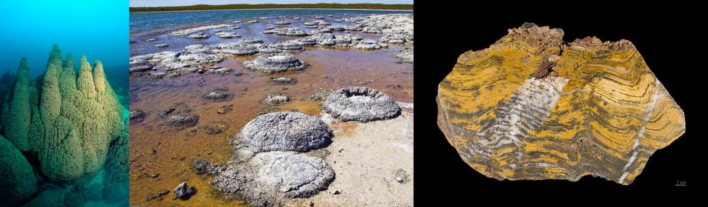 These microbial mats secreted mucous that trapped grains of sediment in the water. As time passed, these microbes built up layer over layer of sediment, forming stromatolites.