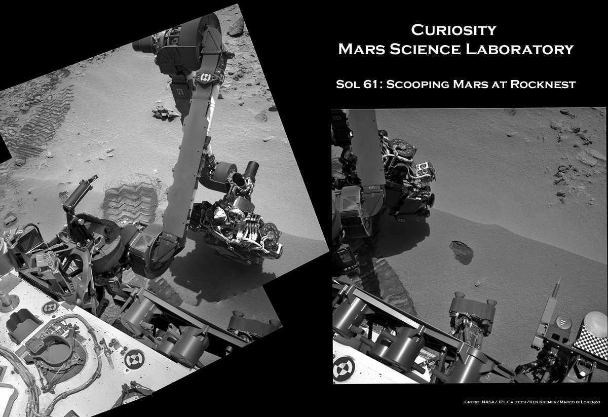 Scooping Mars at 'Rocknest' mosaic above shows a before and after view of the spot where Curiosity was working at on Sol 61.