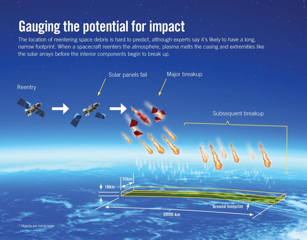 There are no records of a re-entry causing any injury or damage, and NASA says that fewer than a half-dozen of their large pieces of orbital debris re-enter each year. "Since the beginning of the space age in 1957, there has been no confirmed report of an injury resulting from re-entering orbital objects," according to NASA.