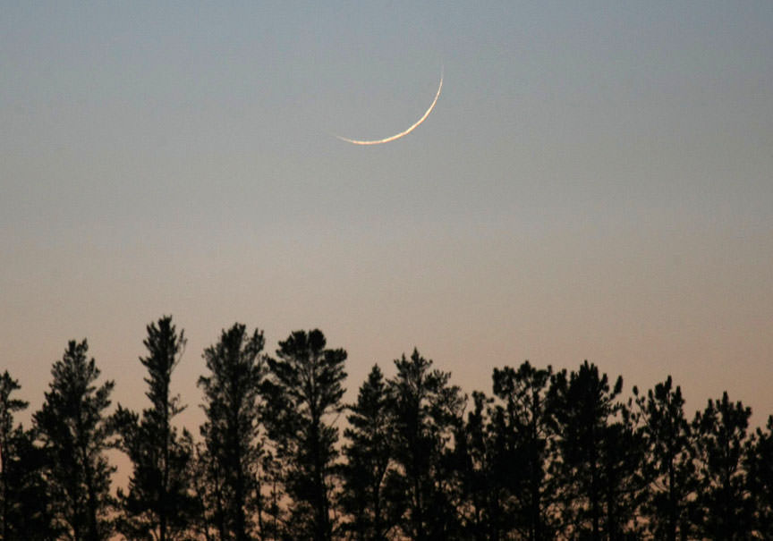 Under favorable circumstances it isn't too difficult to spot a 1-day-old moon, referred to as a young moon because it's the first or youngest bit of moon we see after new moon. Young moons are delicate and tucked far down in the twilight glow shortly after sunset. Spotting one fewer than 24 hours old requires planning. You need a flat horizon, haze-free skies and a pair of binoculars. Being on time's important, too. Be sure to arrive at your observing spot shortly before sundown. Knowing the point on the horizon where the sun sets will guide you to the crescent's location.