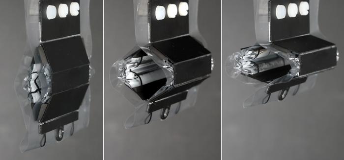 The design team integrated artificial "muscles" into the inner joints of the hexagons, called hydraulically amplified self-healing electrostatic (HASEL) muscles. Applying a high voltage to the module causes the muscle to activate, rotating the joints of the hexagon and changing its shape from long and narrow to wide and flat.