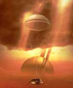 This summer, NASA's Cassini spacecraft, launched in 1997, is scheduled to go into orbit around Saturn and its moons for four years. In early 2005, the piggybacking Huygens probe is scheduled to plunge into the hazy Titan atmosphere and land on the moon's surface. There are 12 instruments onboard the Cassini Spacecraft orbiter, and 6 instruments onboard the Huygens Probe. The Huygens probe is geared primarily towards sampling the atmosphere. The probe is equipped to take measurements and record images for up to a half an hour on the surface. But the probe has no legs, so when it sets down on Titan's surface its orientation will be random. And its landing may not be by a site bearing organics. Images of where Cassini is in its current orbit are continuously updated and available for view as the mission progresses.